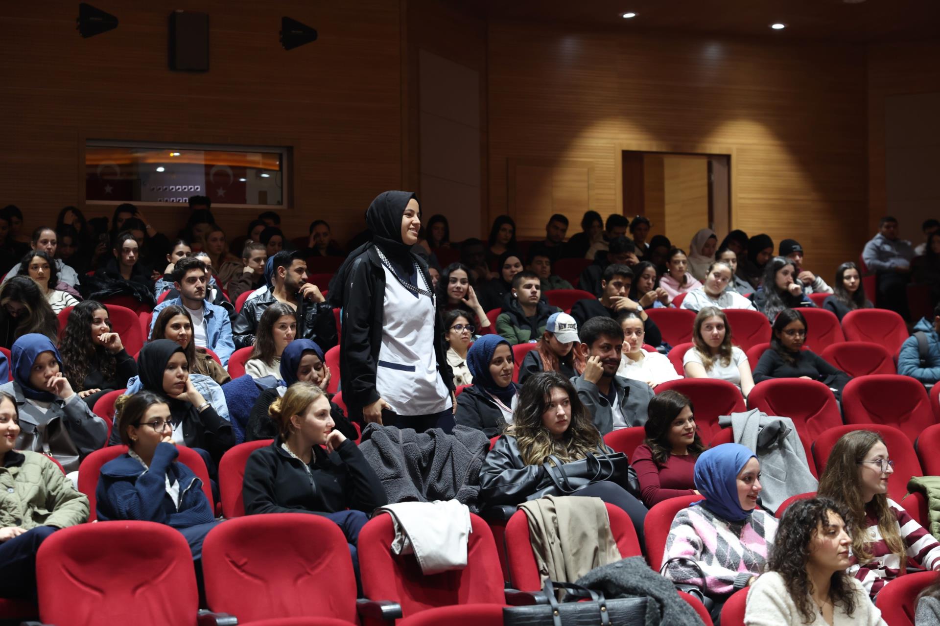 At the end of the program, a Q&A session was held, during which students had the opportunity to discuss topics of interest. Prof. Dr. Latife Utaş Akhan, Head of the Department of Nursing, and Assoc. Prof. Dr. Didem Ayhan, Vice Dean of the Faculty, presented a certificate of appreciation to Saniye Öztürk for her valuable contributions.