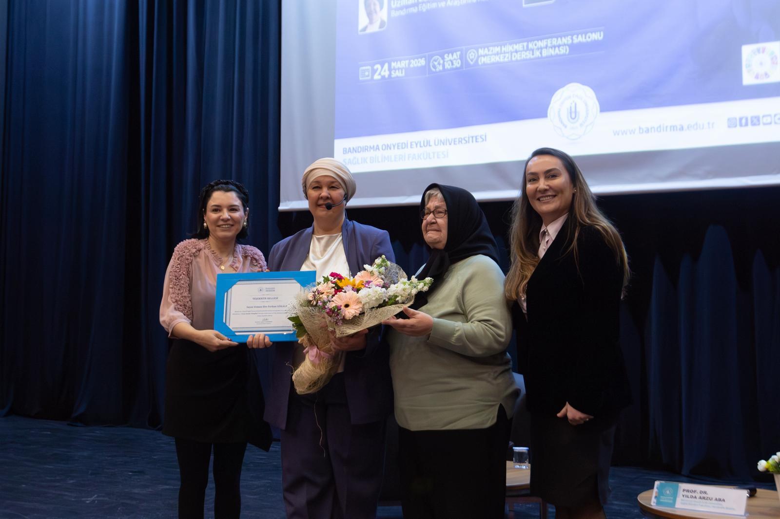 Ferhan Gökalp, the Head of the Delivery Ward at our hospital, met with participants and students during a panel discussion moderated by Prof. Dr. Yılda Arzu Aba, a faculty member in the Department of Nursing at the Faculty of Health Sciences, Bandırma Onyedi Eylül University.