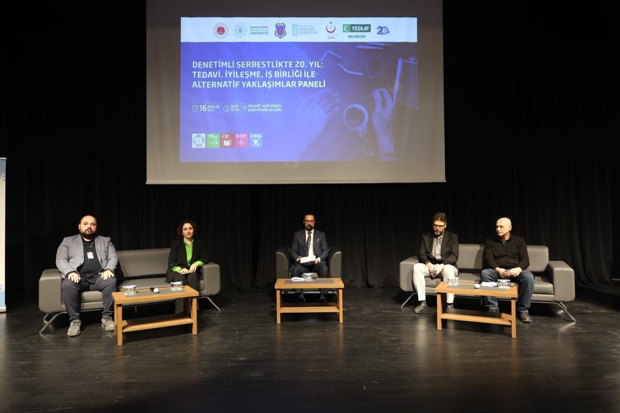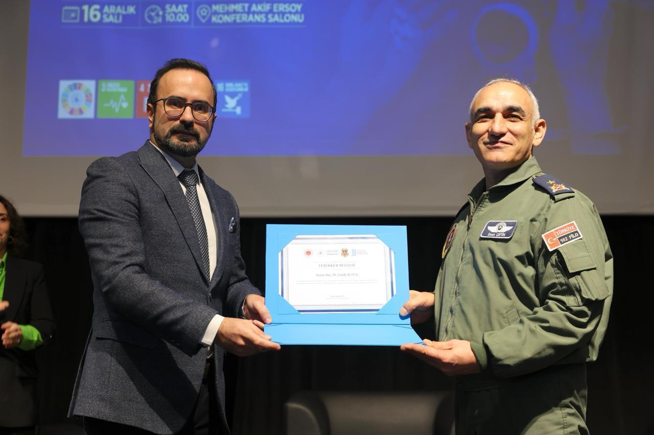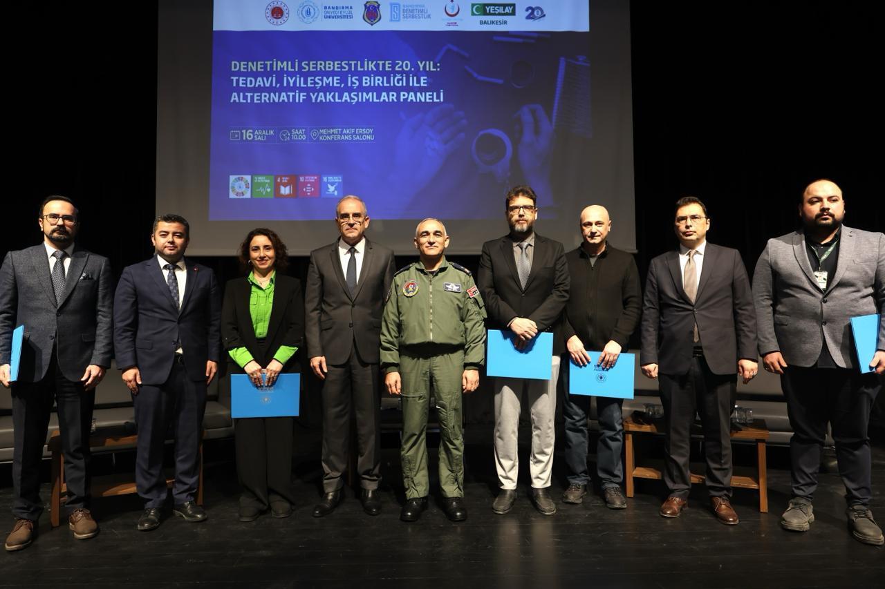 A panel titled “20th Year in Probation: Treatment, Recovery, Cooperation and Alternative Approaches” was held at our university. Organized in collaboration with the Bandırma Probation Directorate, the Balıkesir Provincial Health Directorate, and the Balıkesir branch of Yeşilay (Turkish Green Crescent Society), the panel was moderated by our Head of Department, Assoc. Prof. Dr. Fatih ALTUN. At the end of the panel, which featured expert academics and practitioners in the field of addiction treatment, our Head of Department, Assoc. Prof. Dr. Fatih ALTUN, was presented with a certificate of appreciation by the Commander of the 6th Main Jet Base and Garrison, Air Pilot Brigadier General Esat Çetin.