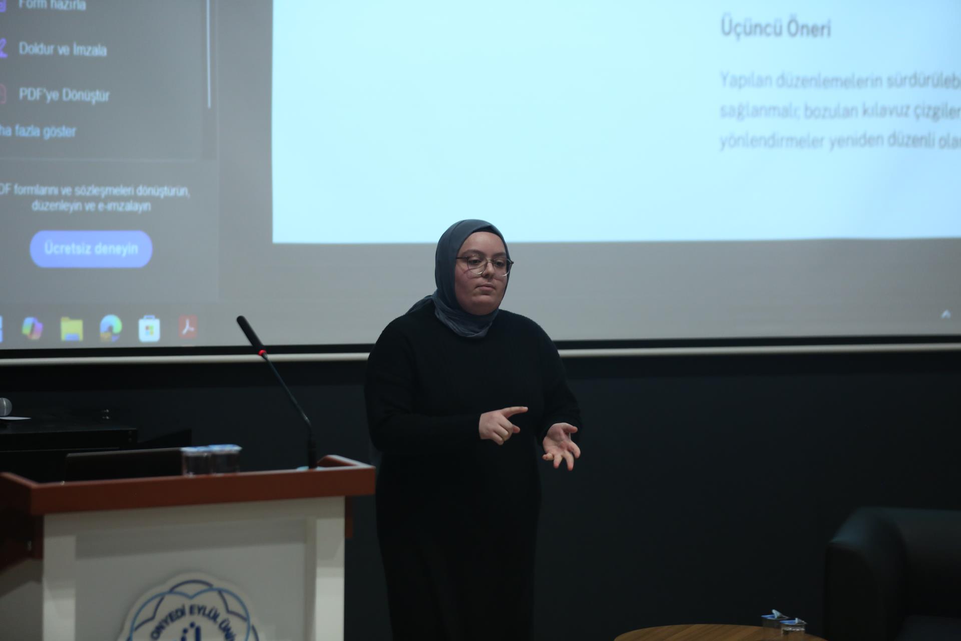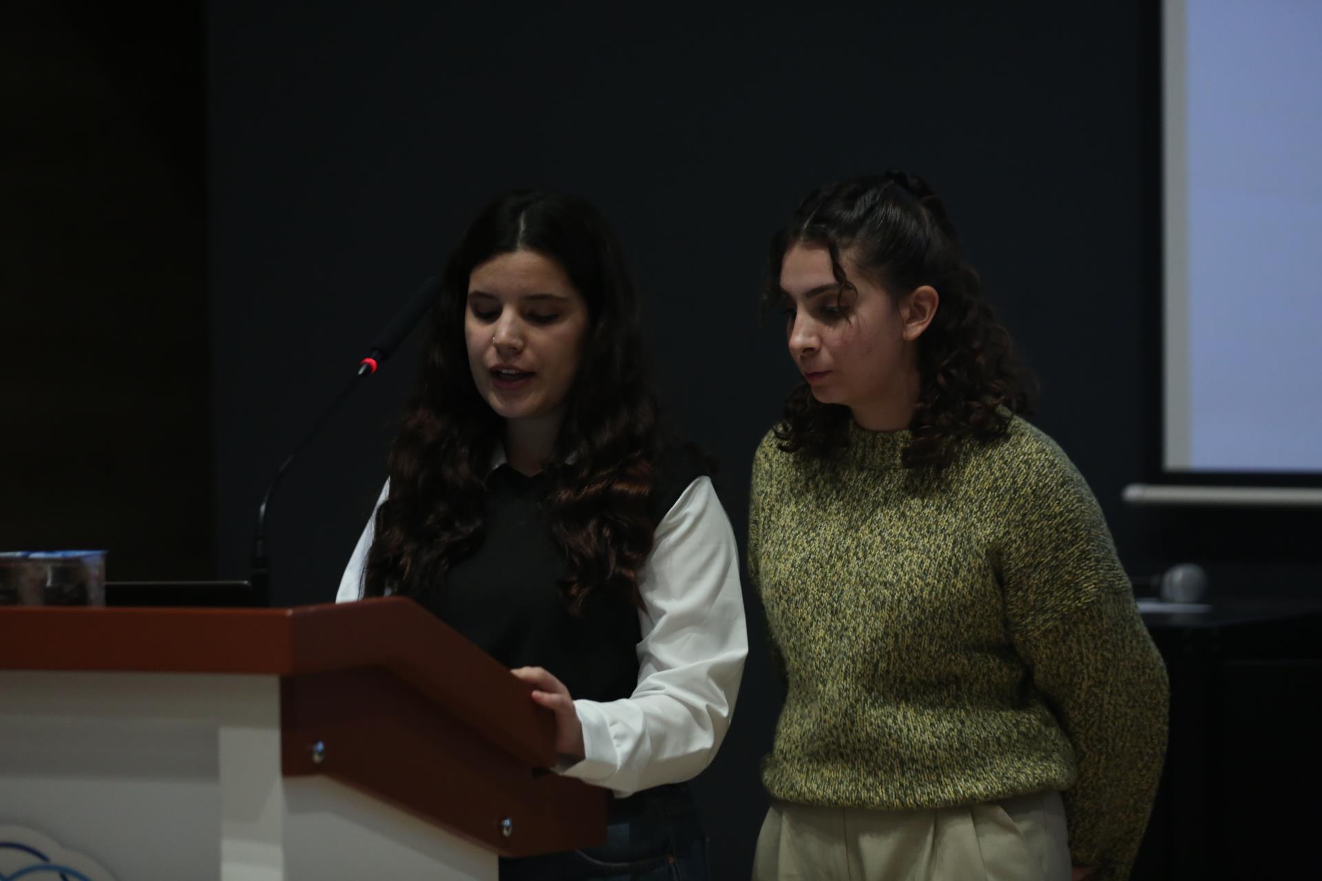 In the second session, themed “Women and University Youth,” participants evaluated the findings of their qualitative research. Nisa Nur Sarı and Sude Babadağ, who interviewed women who experienced violence, and Nisanur Özmen, who interviewed social workers, shared their findings on “Reasons Why Women Experience Violence by Their Husbands Despite Legislation and Practices”; and Gülben Pehlivan shared her findings on “The Experiences of Social Exclusion of Divorced Women.” In the same session, Esra Sarıtunç presented her research findings on "Unemployment Concerns and Future Expectations of Final Year University Students"; Melek Sude Öztürk and Fatma Akın presented their findings on "Social Adaptation Processes of University Students Transferring Horizontally and Vertically".