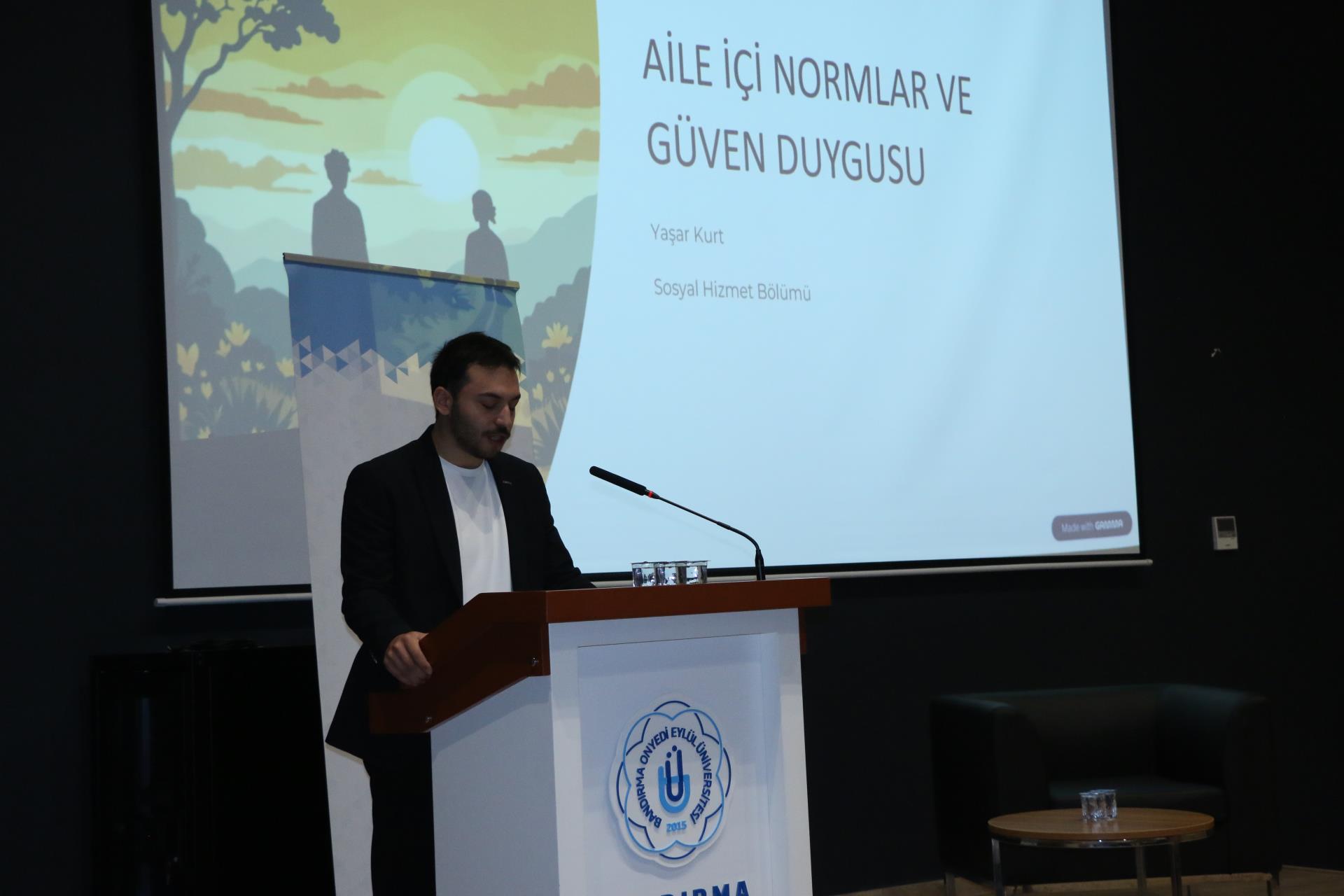 The symposium consisted of four sessions where students presented their work prepared under the chairmanship of Prof. Dr. Recep YILDIZ during the semester. The first session, themed "Family," shared findings and conclusions reached after qualitative research. Eda Nur Kaya and Havva Gündüz analyzed the answers given by young people to the question, "Family Pressure or Family Compassion?" Gamze Özkez shared findings and conclusions on “Expectations of University Students with Divorced and Non-Divorced Parents Regarding the Family Structure They Will Establish in the Future”; Yaşar Kurt on “Family Norms and the Feeling of Trust from the Perspective of Adolescents”; and Sudenaz Kantaroğlu on “The Deformation of Online Gambling on Family and Social Life.” Ceyda Demir and Melike Aktaş also presented a literature review on “The Social Life Experiences of Seasonal Workers.”