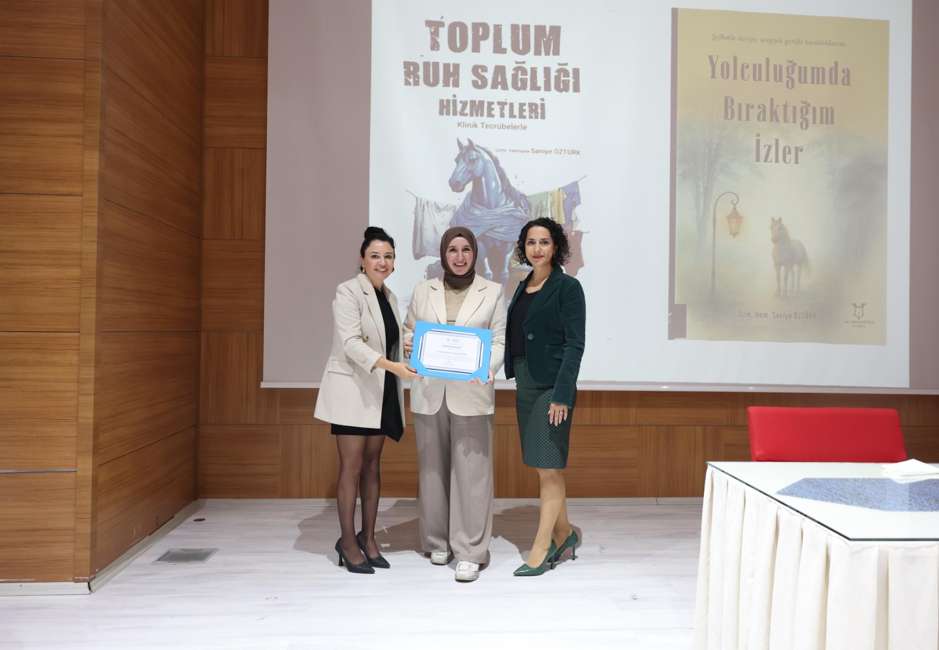Program sonunda soru-cevap bölümüyle öğrencilerin merak ettiği konular tartışıldı. Hemşirelik Bölüm Başkanı Prof. Dr. Latife Utaş Akhan ve Fakülte Dekan Yardımcısı Doç. Dr. Didem Ayhan, değerli paylaşımlarından dolayı konuşmacı Saniye Öztürk’e teşekkür belgesi takdim etti.
