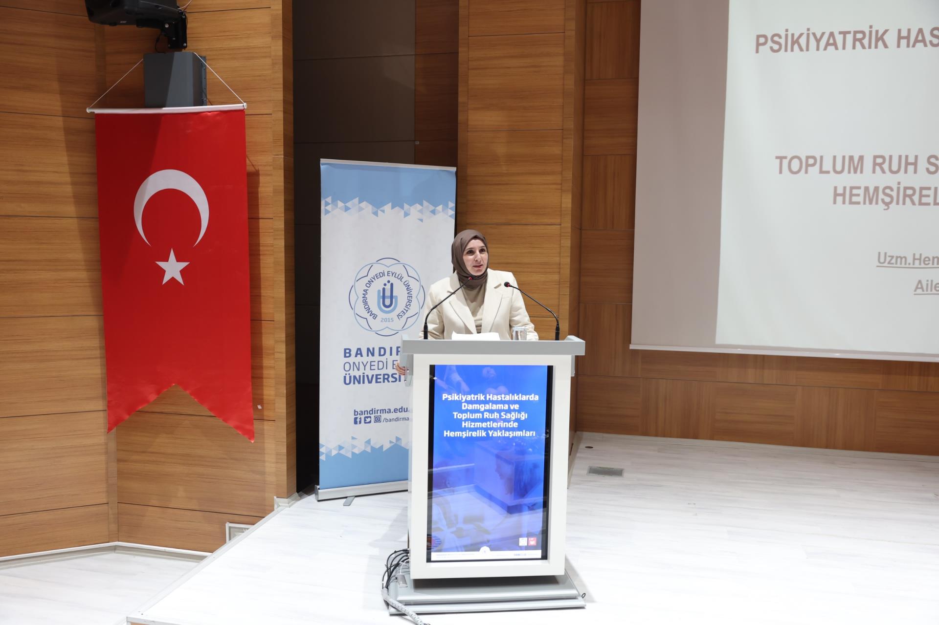 Etkinliğin konuşmacısı, Erenköy Ruh ve Sinir Hastalıkları Eğitim ve Araştırma Hastanesi’nden Uzman Hemşire Saniye Öztürk oldu. Programın moderatörlüğünü ise Bandırma Onyedi Eylül Üniversitesi Sağlık Bilimleri Fakültesi Hemşirelik Bölümü Başkanı Prof. Dr. Latife Utaş Akhan yürüttü.