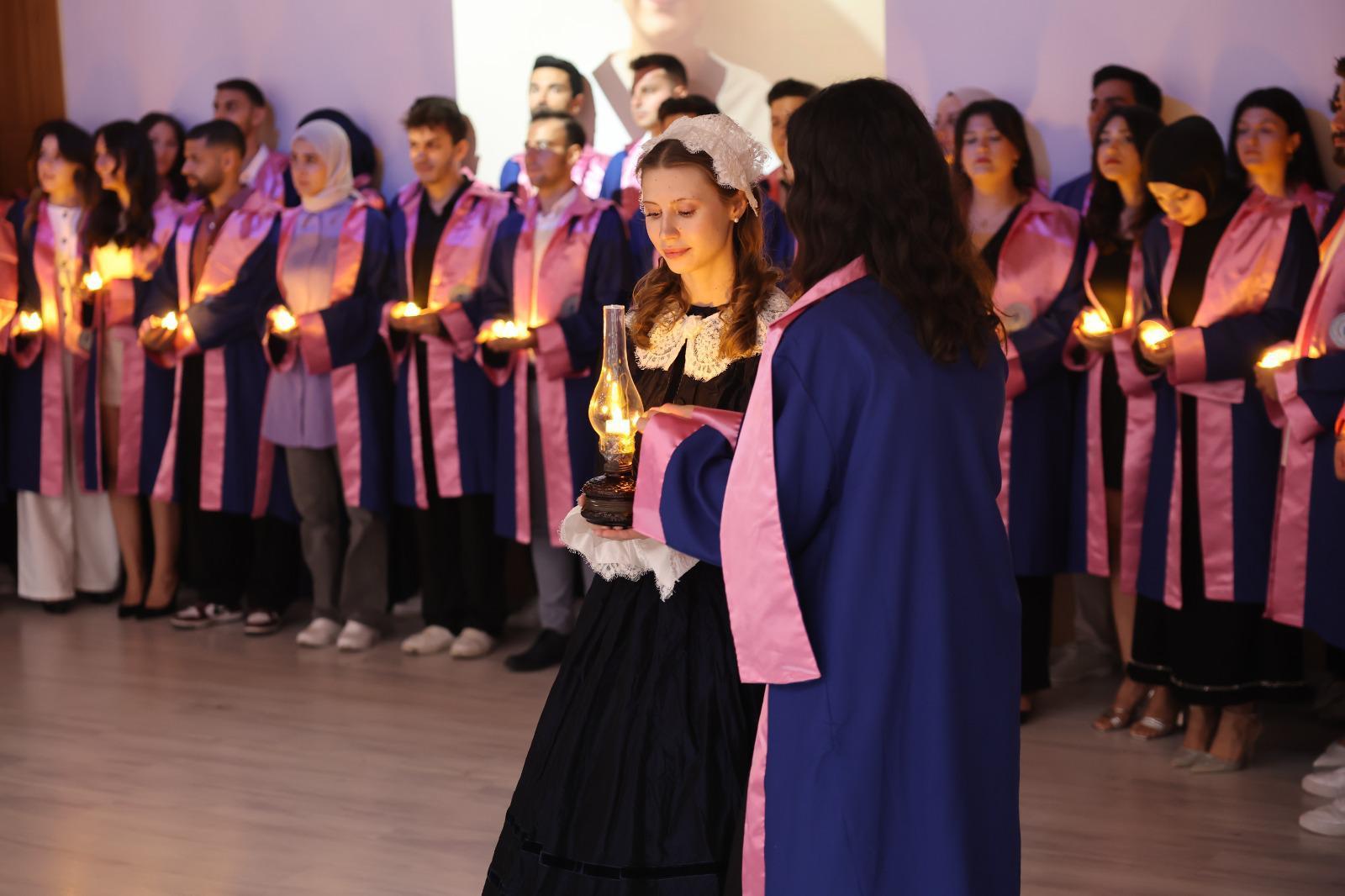 Her yıl büyük bir coşkuyla gerçekleştirilen Mezuniyet Töreni, Yemin Töreni ve Hemşirelik Haftası Etkinlikleri, hem öğrencilerimizin emeklerinin taçlandığı hem de hemşirelik mesleğinin değerlerinin vurgulandığı anlamlı buluşmalardır. Bu yıl ilk kez düzenlenen Forma Giyme Töreni ise, mesleki yolculuğun ilk adımlarını simgeleyen özel bir etkinlik olarak gelenekselleşme yolunda önemli bir adım olmuştur.