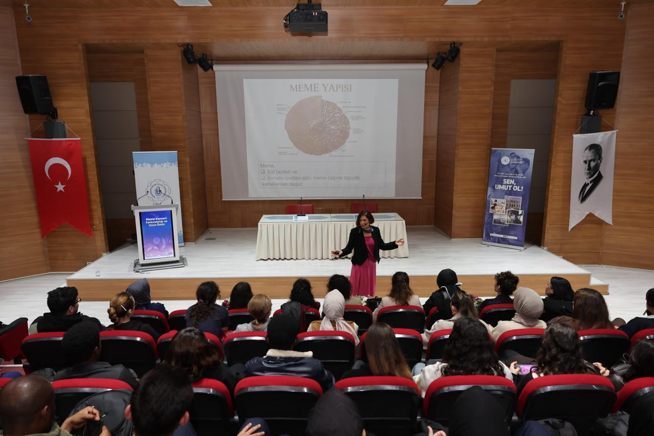 Üniversitemiz Sağlık Bilimleri Fakültesi Hemşirelik Bölümü tarafından, meme kanseri farkındalık ayı kapsamında “Meme Kanseri Farkındalığı ve Uzun Ömür” başlıklı bir konferans düzenlendi.