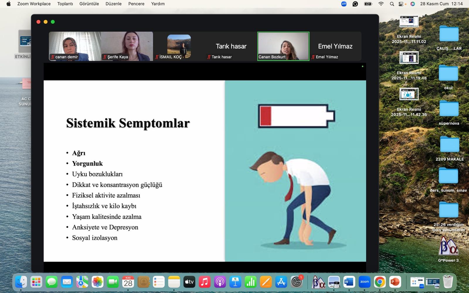 Bandırma Onyedi Eylül Üniversitesi Sağlık Bilimleri Fakültesi tarafından, akciğer kanserine yönelik farkındalığı artırmak amacıyla 28 Kasım 2025 tarihinde çevrim içi “Akciğer Kanseri Farkındalık Etkinliği” düzenlenmiştir. “Akciğer Kanserinde Erken Tanı ve Tedavinin Önemi” başlıklı sunum Kütahya Sağlık Bilimleri Üniversitesi Tıp Fakültesi Göğüs Hastalıkları Anabilim Dalı öğretim üyesi Dr. Öğr. Üyesi Şerife Kaya tarafından, “Kanserden Korunmada Beslenme Önerileri” başlıklı sunum Fakültemiz Beslenme ve Diyetetik Bölümü öğretim üyesi Doç. Dr. Özlem Persil Özkan tarafından, “Akciğer Kanserinde Fizyoterapi ve Rehabilitasyon” başlıklı sunum Fakültemiz Fizyoterapi ve Rehabilitasyon Bölümü öğretim üyesi Dr. Öğr. Üyesi Canan Demir tarafından, “Akciğer Kanserinde Görülen Semptomlar ve Hemşirelik Bakımı” başlıklı sunum ise Fakültemiz Hemşirelik Bölümü öğretim üyesi Dr. Öğr. Üyesi Canan Bozkurt Duman tarafından gerçekleştirilmiştir.