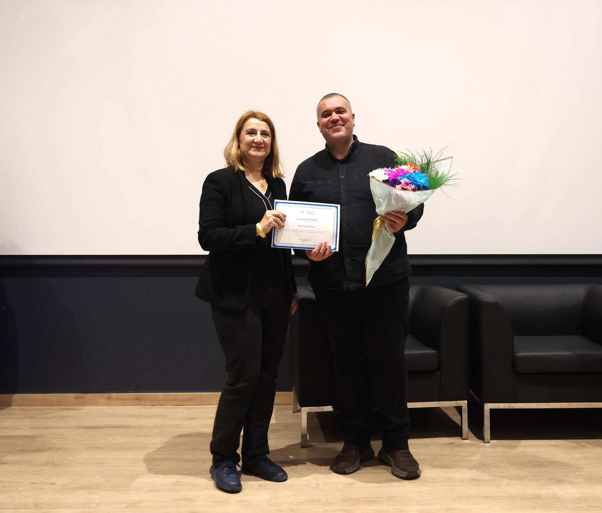 Programın sonunda konuşmacılara teşekkür belgeleri, Rektörümüz Prof. Dr. İsmail Boz’un eşi Sibel Boz, Rektör Yardımcımız Prof. Dr. Ebru Kaya Mutlu ve Tıp Fakültesi Dekanımız Prof. Dr. Ayşe Güldem Kilciler tarafından takdim edildi.