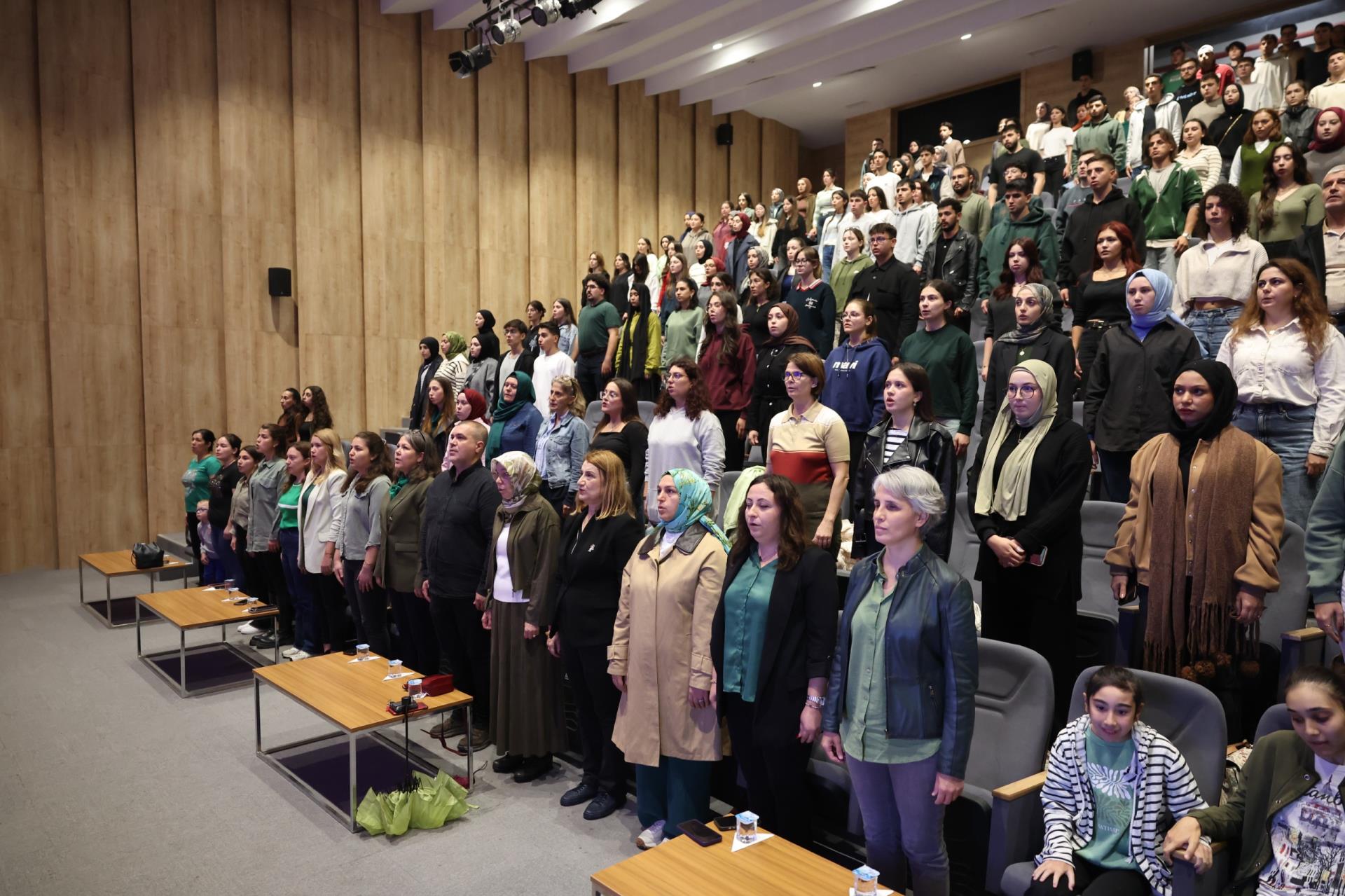 Prof. Dr. Aziz Sancar Konferans Salonu’nda gerçekleştirilen programa; Rektörümüz Prof. Dr. İsmail Boz’un eşi Sibel Boz, Rektör Yardımcımız ve Sağlık Bilimleri Fakültemiz Ortopedik Fizyoterapi ve Rehabilitasyon Anabilim Dalı Başkanı Prof. Dr. Ebru Kaya Mutlu, Tıp Fakültesi Dekanımız Prof. Dr. Ayşe Güldem Kilciler, akademik ve idari personel ile öğrenciler katıldı. Saygı duruşu ve İstiklal Marşı’nın okunmasıyla başlayan programın, günün anlam ve önemine ilişkin açılış konuşmasını Prof. Dr. Ebru Kaya Mutlu yaptı.