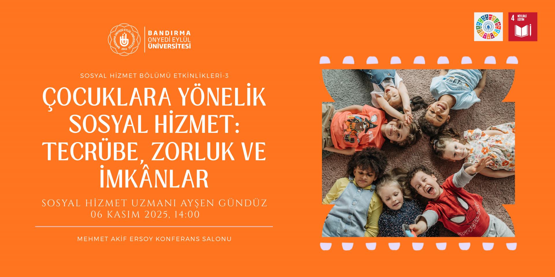 06 Kasım 2025, Perşembe günü saat 14.00'da bölümümüz tarafından Çocuklara Yönelik Sosyal Hizmet: Tecrübe, Zorluk ve İmkânlar Etkinliği gerçekleştirilecektir.