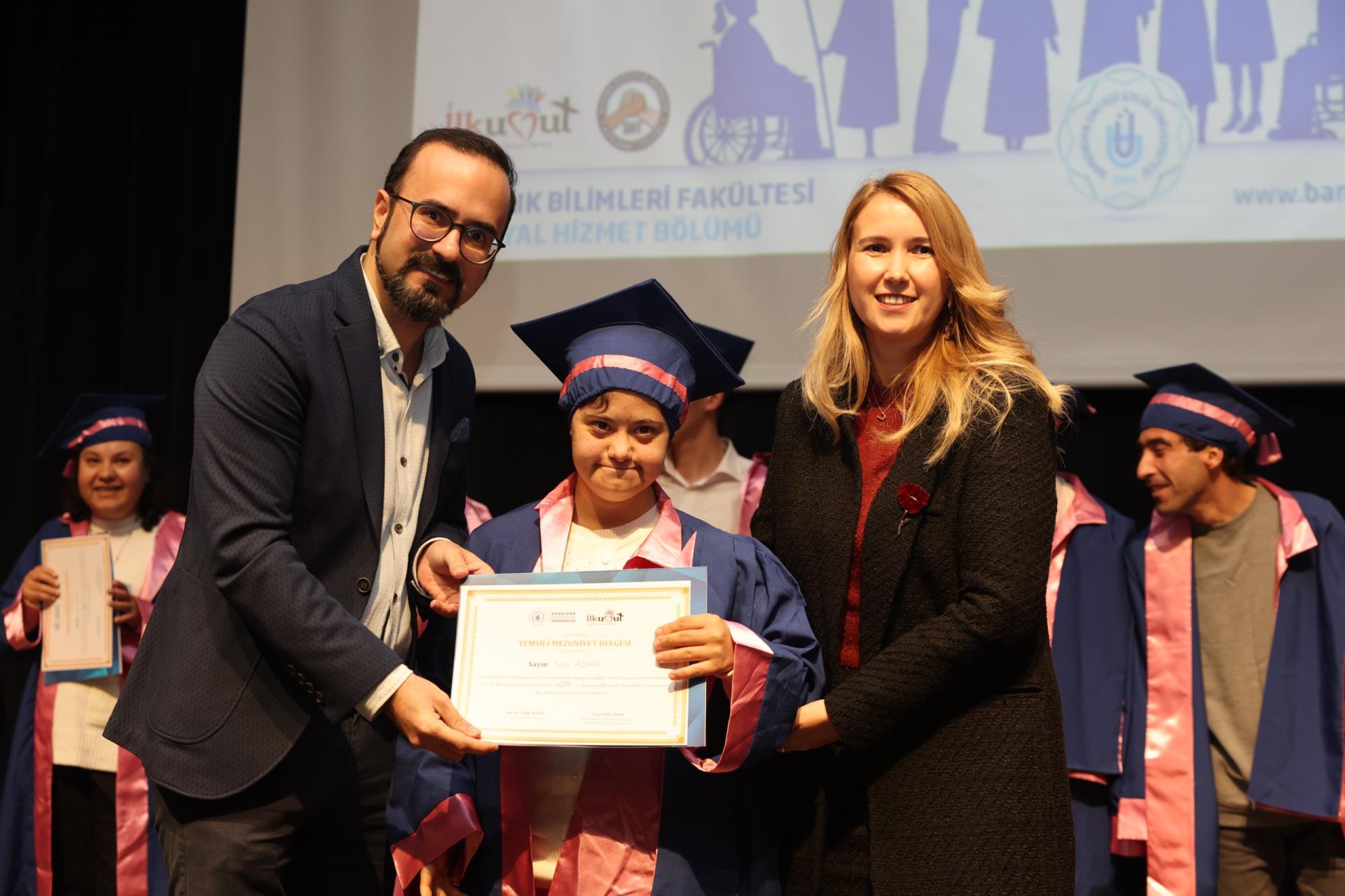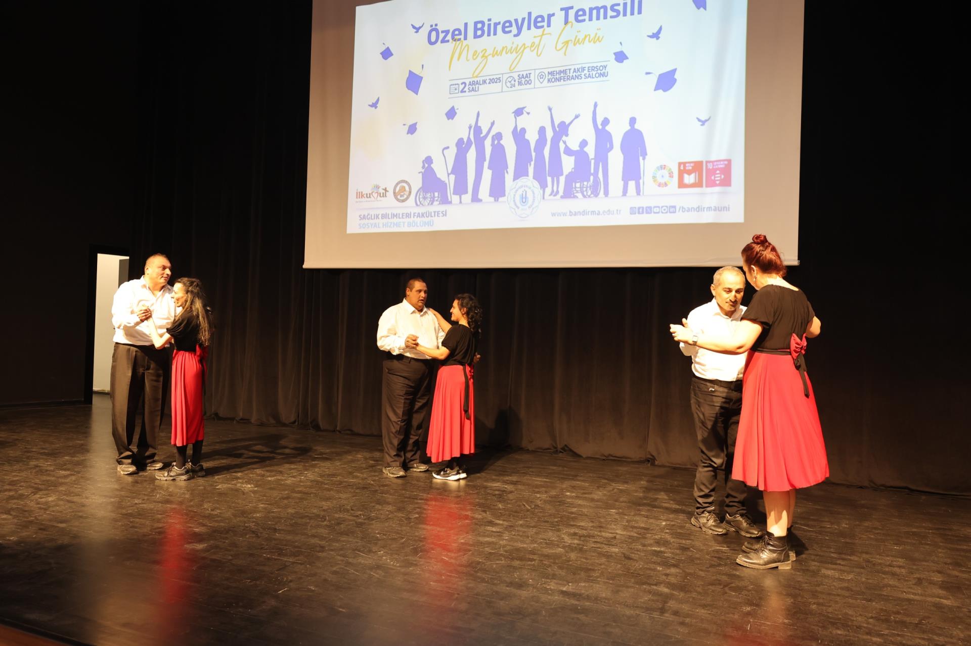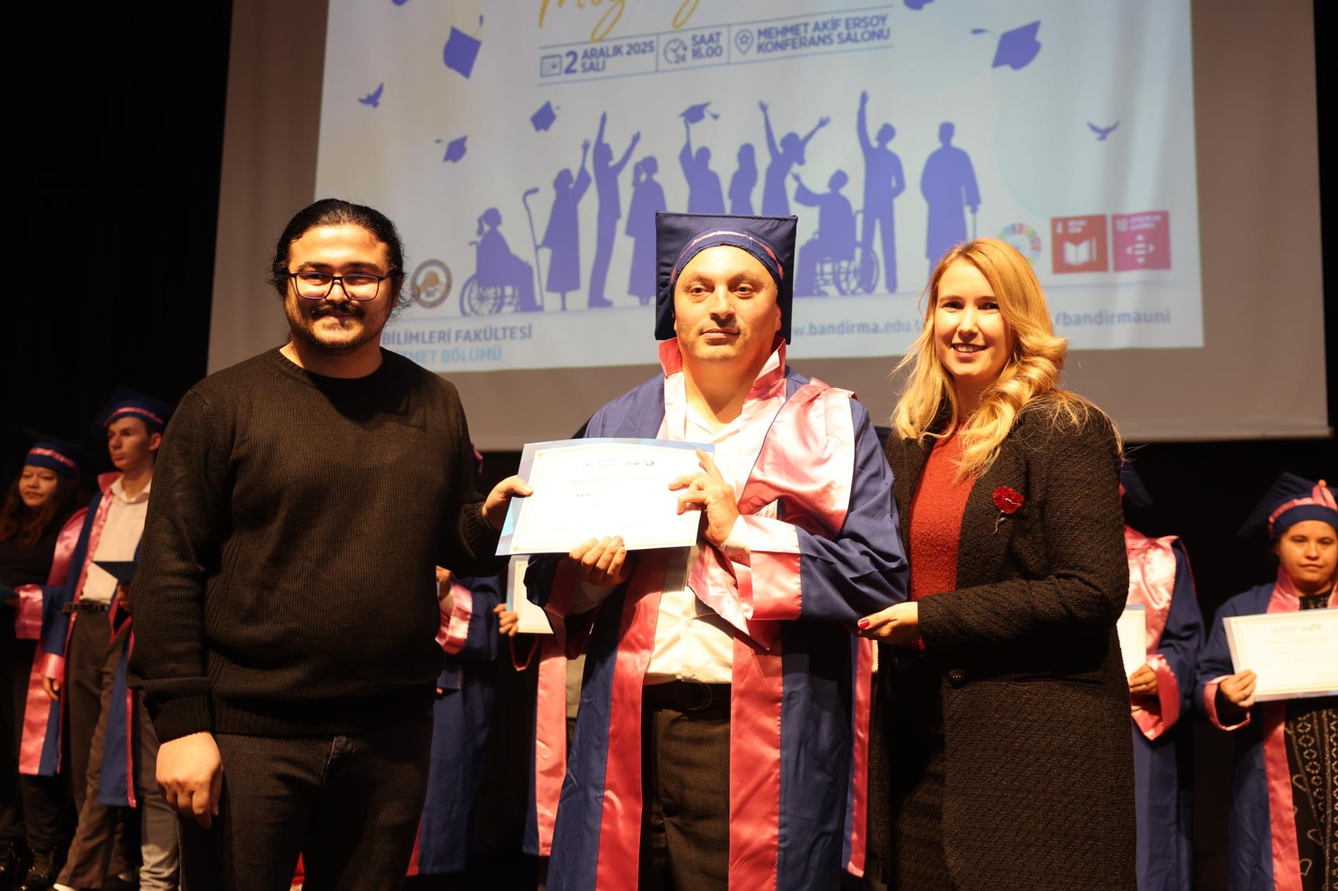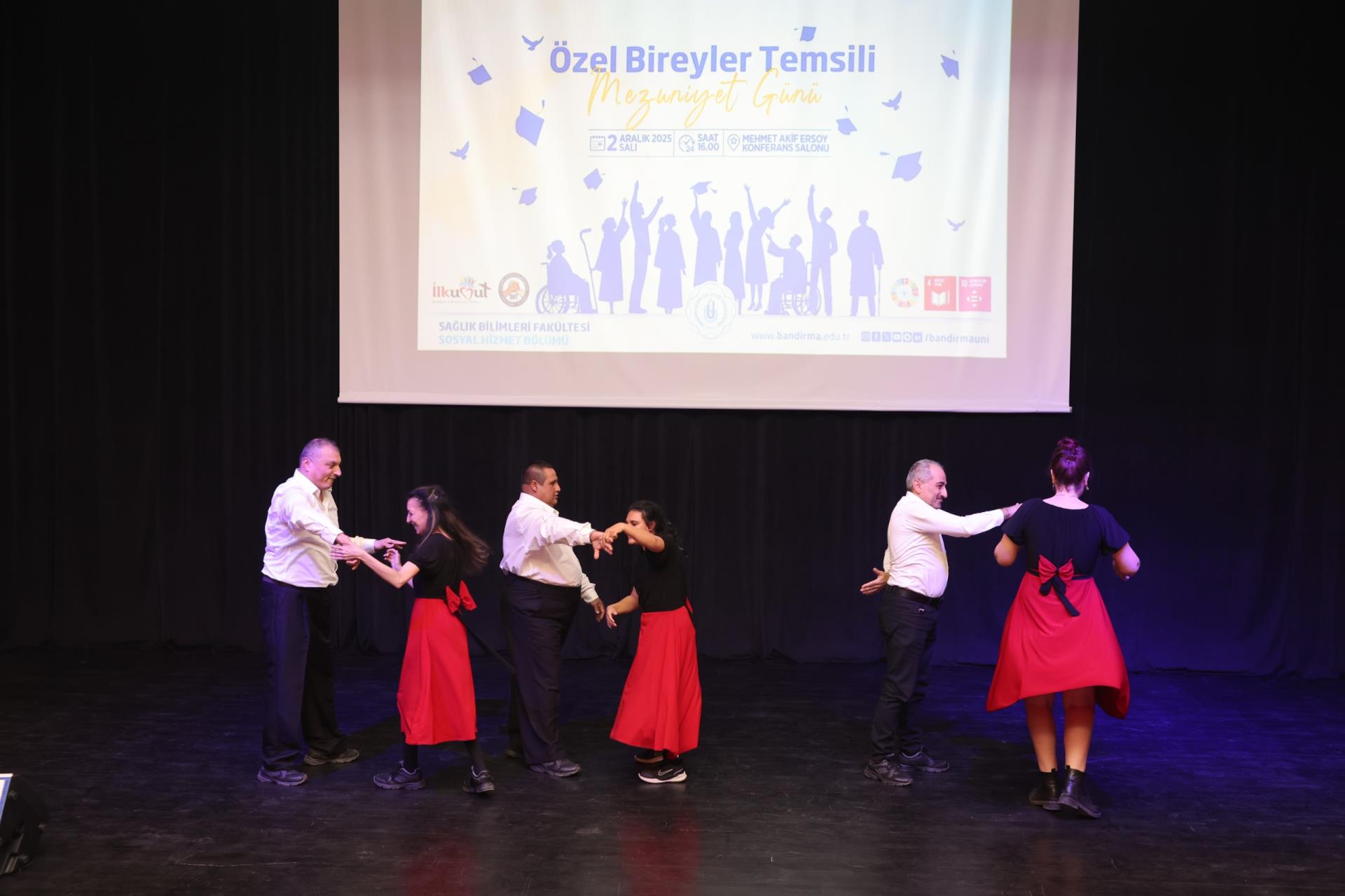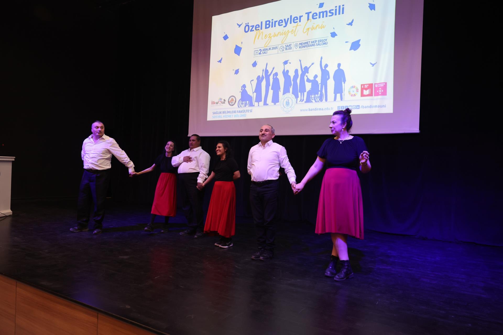 Bandırma Onyedi Eylül Üniversitesi Sağlık Bilimleri Fakültesi Sosyal Hizmet Bölümü, Sosyal Hizmet Topluluğu ve Bandırma İlk Umut Özel Eğitim ve Rehabilitasyon Merkezi iş birliğiyle Özel 3 Aralık Dünya Engelliler Günü dolayısıyla üniversitemizde “Temsili Mezuniyet Töreni” düzenledi. Saygı duruşu ve İstiklâl Marşı ile başlayan program açılış konuşmaları ile devam etti.