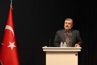 Daha sonra kürsüye davet edilen Sosyal Hizmet Bölümü Öğretim Üyesi Prof. Dr. Recep YILDIZ konuşmasında engelli bireylerin ülkemizde her geçen yıl daha görünür hale geldiğini ve toplumla daha güçlü bir biçimde bütünleştiğini vurgulayarak, bunun son derece sevindirici bir gelişme olduğunu ifade etti. Ancak bu görünürlüğün artık daha fazla üretkenliğe de dönüşmesi gerektiğinin altını çizen YILDIZ, engelli bireylerin kendi yetenekleriyle toplumun tüm alanlarında daha aktif rol almalarının önemine dikkat çekti. Bu yaklaşımın hem bireylerin güçlenmesine hem de toplumun gelişimine önemli katkılar sağlayacağını belirtti.