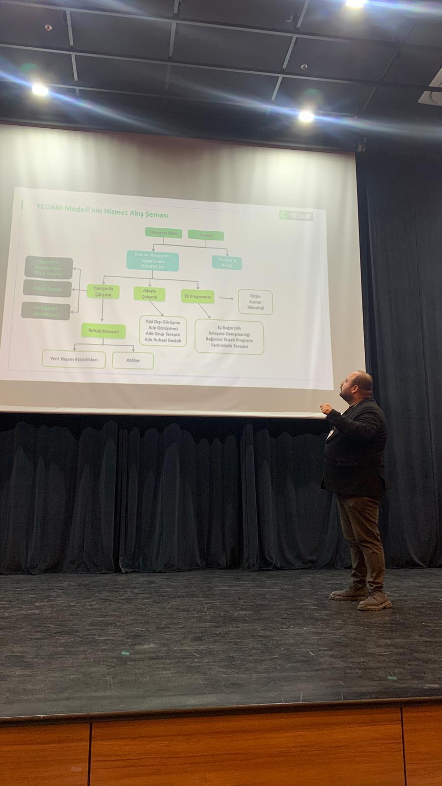 Yeşilırmak, bağımlılık alanında yürütülen sosyal hizmet çalışmalarını kurumsal, mesleki ve bireysel boyutlarıyla ele aldı. Yeşilay çatısı altında bağımlı bireylere yönelik gerçekleştirilen müdahaleleri, YEDAM’larda uygulanan sosyal hizmet süreçlerini ve bağımlı bireylerin topluma yeniden kazandırılmasına yönelik çalışmaları detaylı biçimde aktardı. Ayrıca meslekte karşılaşılan güçlükler ile sosyal hizmetin sunduğu imkânları kendi deneyimleri üzerinden paylaştı.