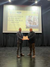 Programın sonunda öğrenciler, yönelttikleri sorularla hem bağımlılık alanındaki sosyal hizmet uygulamalarına hem de konuşmacının kişisel mesleki deneyimlerine dair kapsamlı bilgi edinme fırsatı buldu. Etkinlik, Bölüm Başkanımız Doç. Dr. Fatih Altun'un Baybars Kaan Yeşilırmak’a teşekkür belgesi takdimiyle sona erdi.