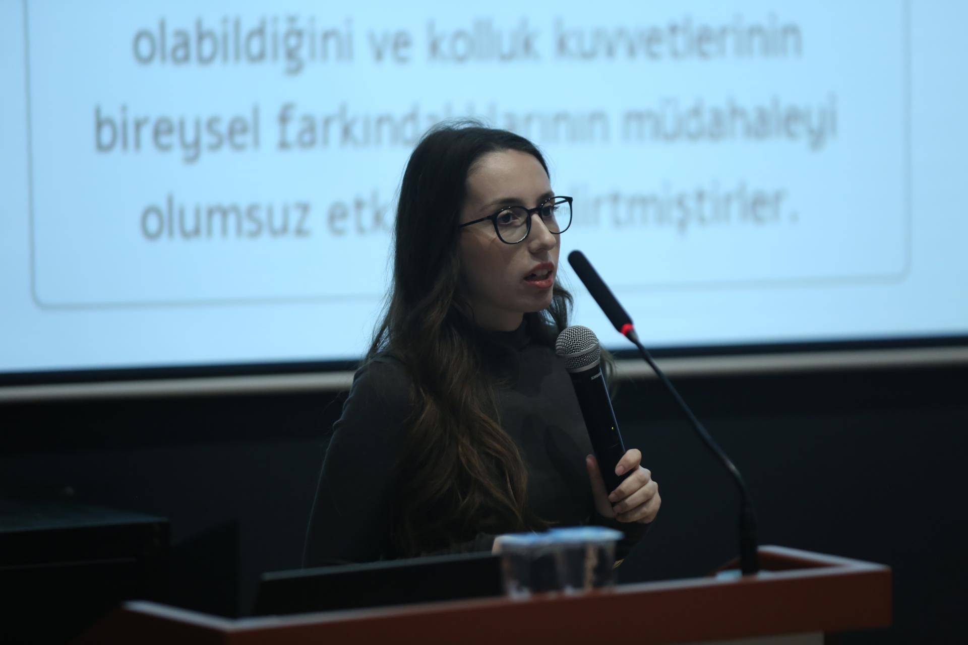 “Kadın ve Üniversite Gençleri” temalı ikinci oturumda katılımcılar gerçekleştirdikleri nitel araştırma bulgularını değerlendirdiler. Nisa Nur Sarı ile Sude Babadağ şiddet gören kadınlarla; Nisanur Özmen de sosyal çalışmacılarla görüşerek, “Mevzuat ve Uygulamalara Rağmen Kadınların Eşleri Tarafından Şiddet Görmelerinin Nedenleri”, Gülben Pehlivan da “Boşanmış Kadınların Toplumsal Dışlanma Deneyimleri” hakkında ulaştığı sonuçları paylaştılar. Aynı oturumda Esra Sarıtunç “Üniversite Son Sınıf Öğrencilerinin İşsizlik Kaygıları ve Gelecek Beklentileri”ne; Melek Sude Öztürk ile Fatma Akın da “Yatay ve Dikey Geçiş Yapan Üniversite Öğrencilerinin Sosyal Uyum Süreçleri”ne dair araştırma bulgularını aktardılar.