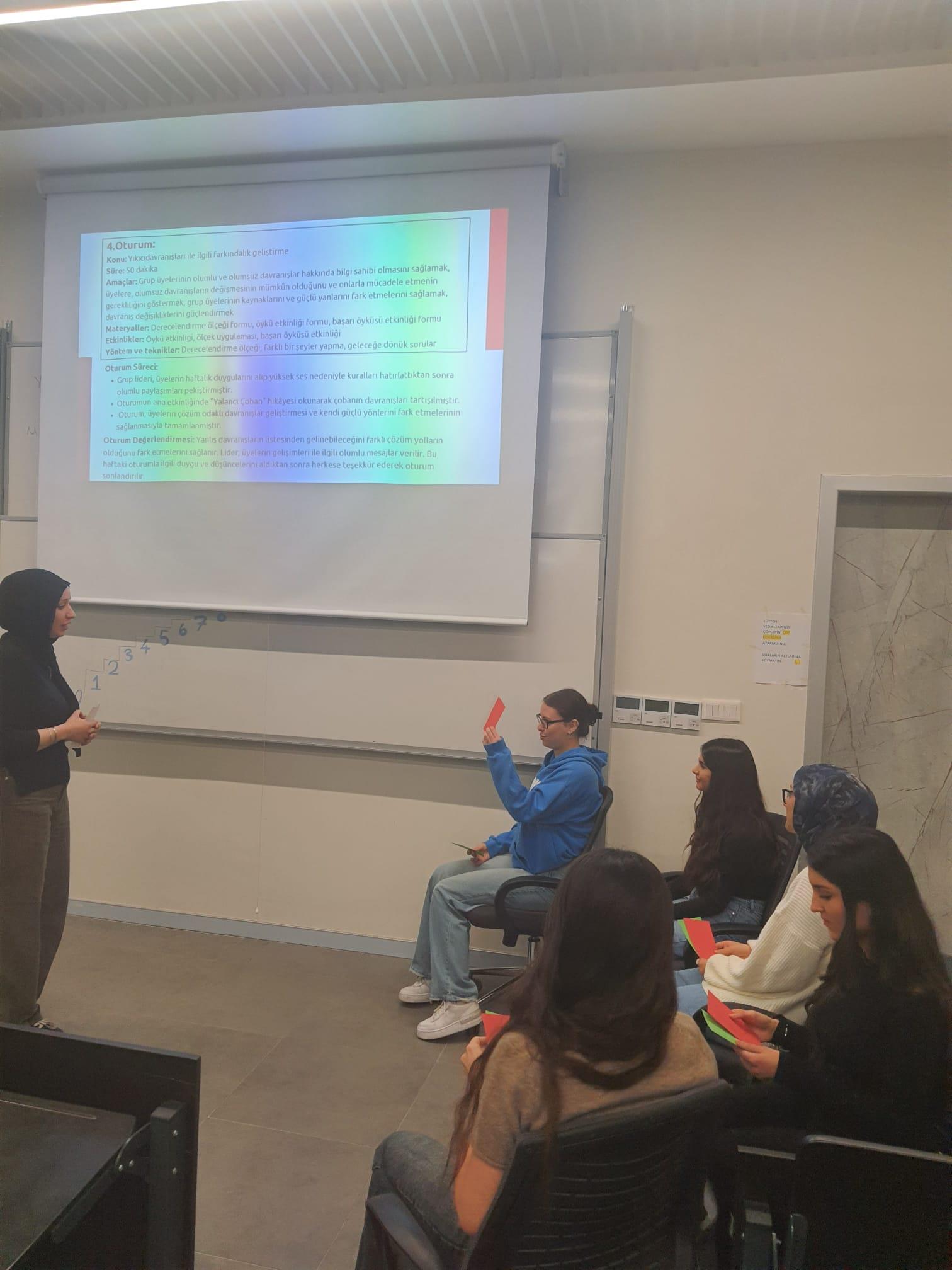 Ders kapsamında öğrenciler, farklı tematik başlıklar etrafında yapılandırılmış grup çalışmaları planlamakta ve uygulamaktadır. Bu süreçte grup dinamiklerini anlama, müdahale planı oluşturma, grup sürecini yönetme ve değerlendirme gibi temel mesleki beceriler aktif olarak deneyimlenmektedir. Uygulamalar, sosyal hizmetin temel yöntemlerinden biri olan grup çalışmasının, özellikle vaka yönetimi bağlamında nasıl işlevselleştirilebileceğini somut örneklerle ortaya koymaktadır.